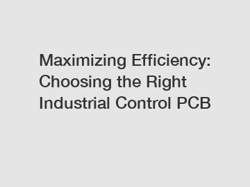 # Maximizing Efficiency: Choosing the Right Industrial Control PCB.